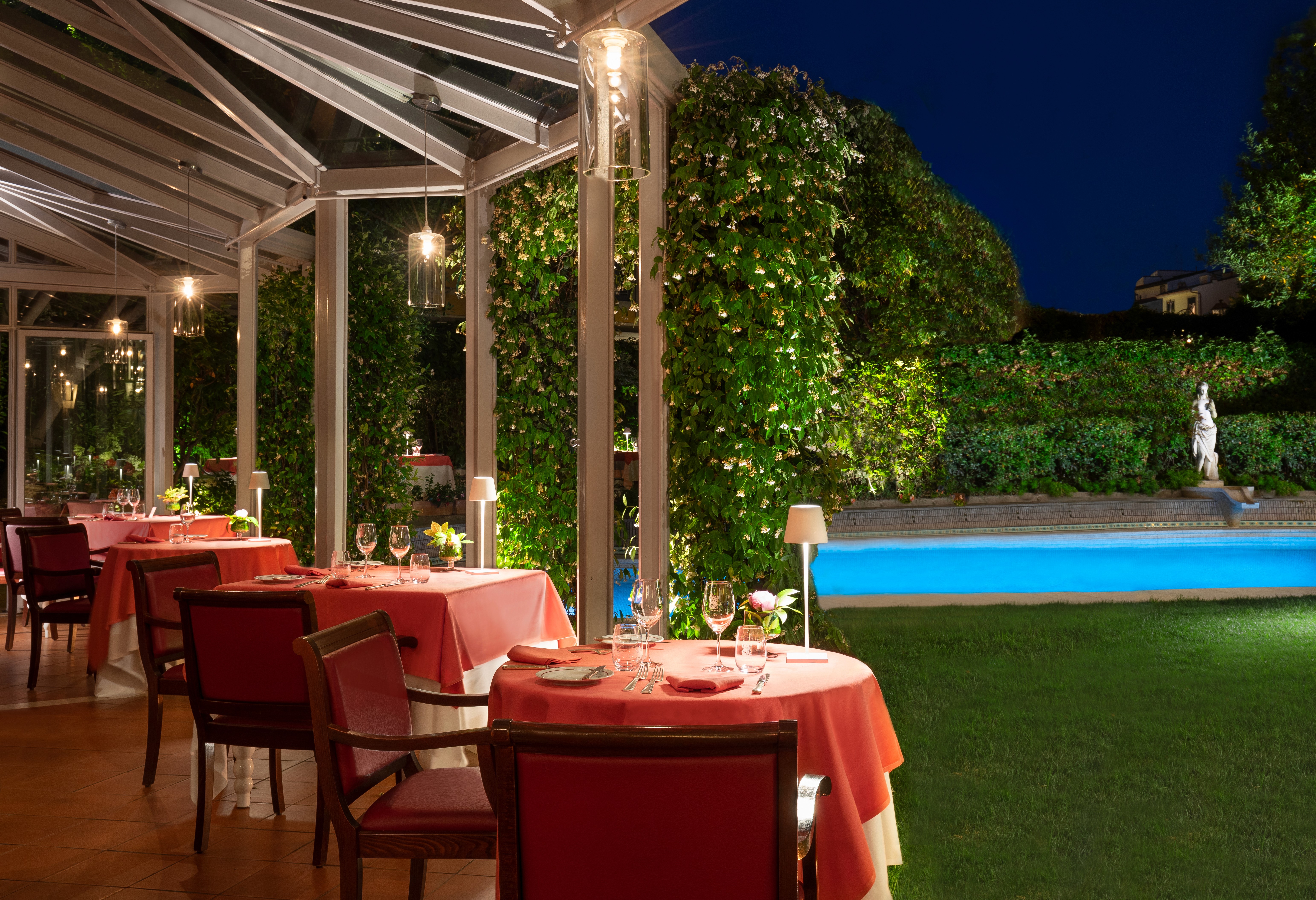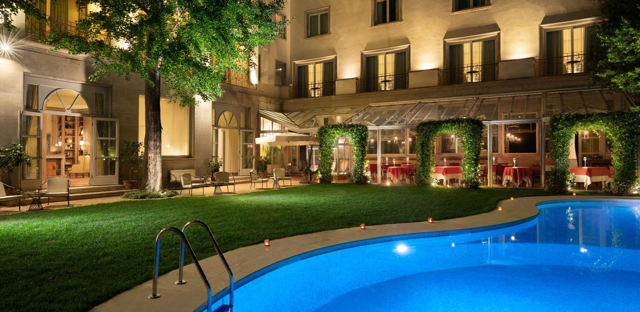 The luxuriant garden with a swimming pool, a unique feature in the centre of Florence, is the jewel in the crown of the Sina Villa Medici which, since 2021, can also boast Harry's Bar The Garden restaurant.
