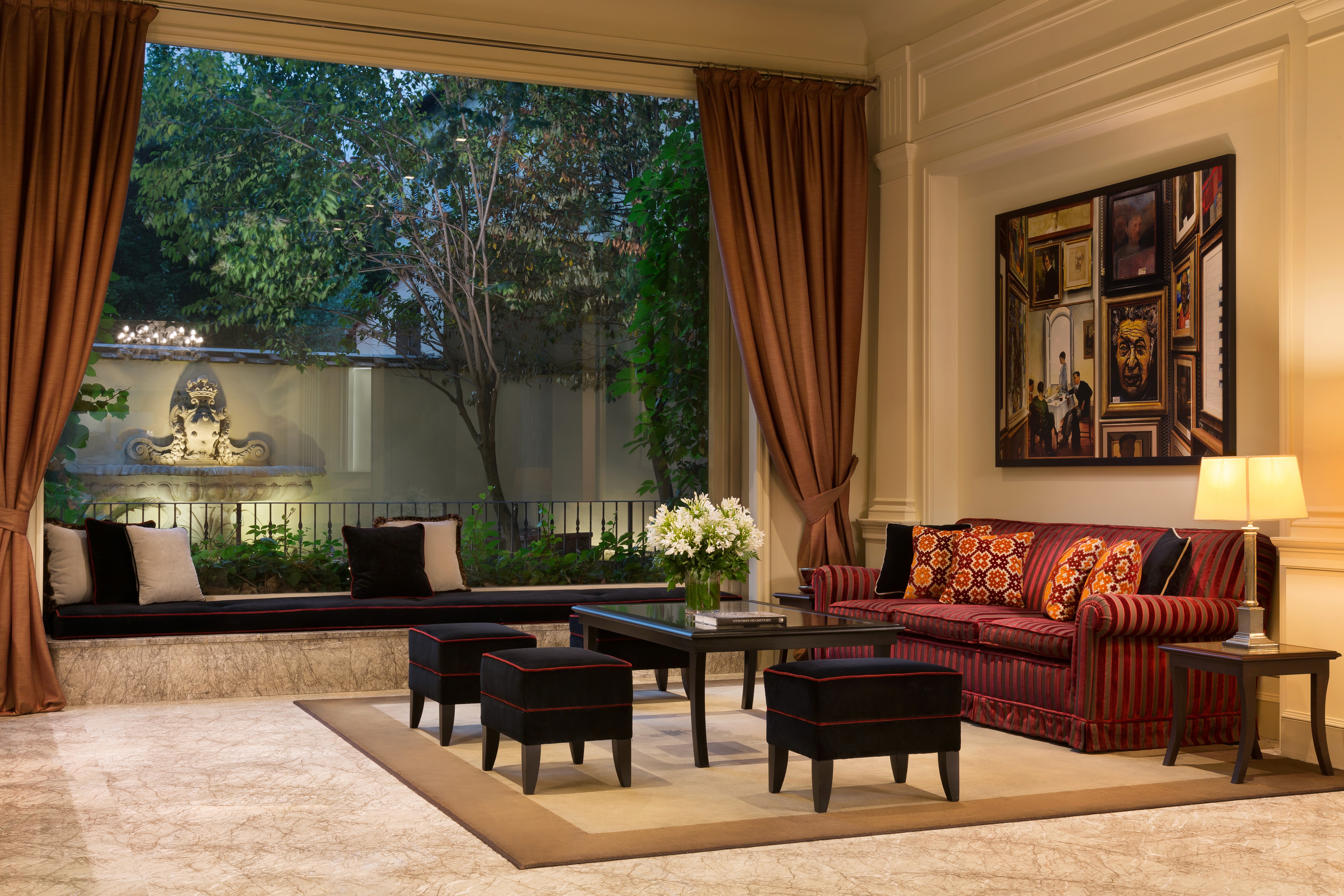 The hotel, while respecting the historic charm of the building, flaunts a contemporary look, combining modern works of art, many of them specially created by the artist Marco Lanza, with antiques that are protected by the Fine Arts Authority.