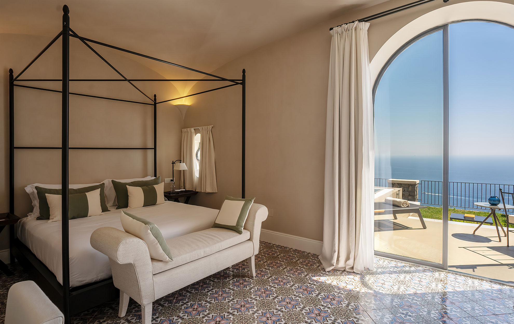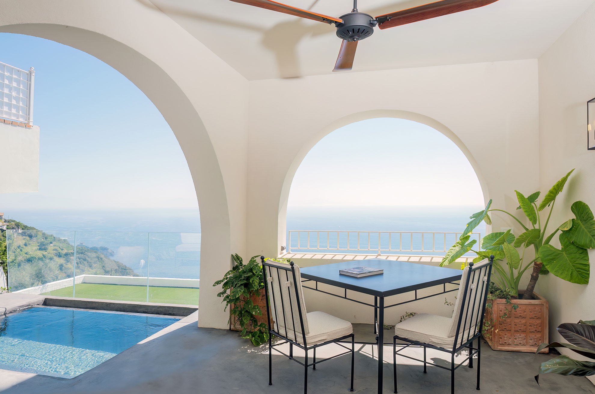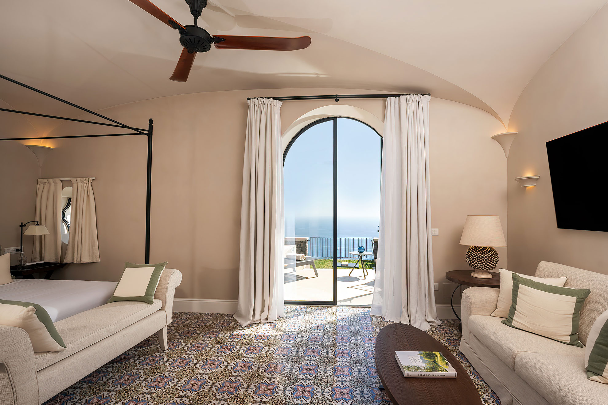 Furore Lodge. Located on one of the most exclusive and reserved terraces of the Furore Grand Hotel, this characteristic villa with warm tones welcomes two very elegant and refined suites, with a large living area and an independent entrance. All fully immersed in a beautiful garden of approx. 1000 square meters and with a beautiful relaxation area exclusively for residents’ use: the flagship of “Our House”.