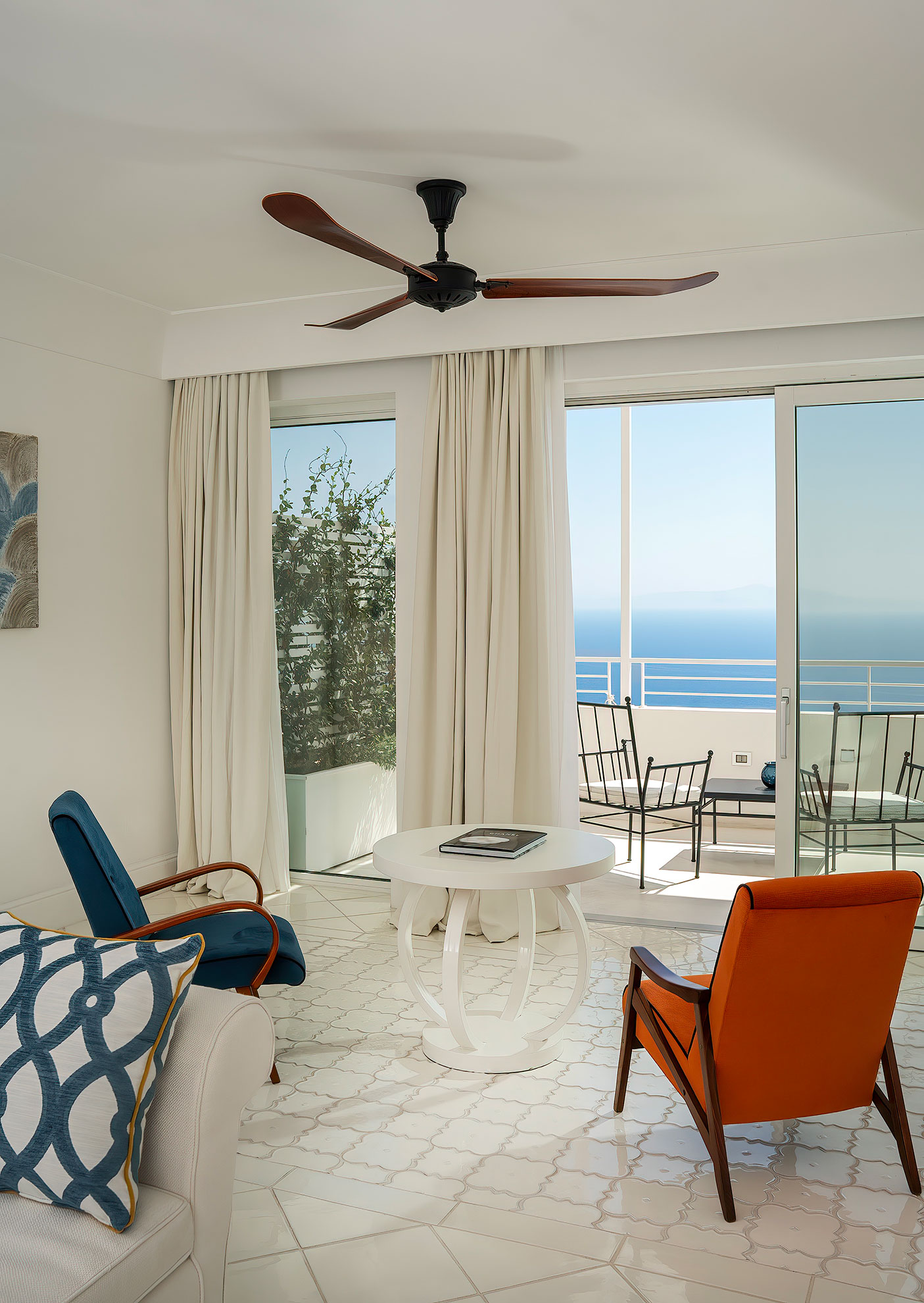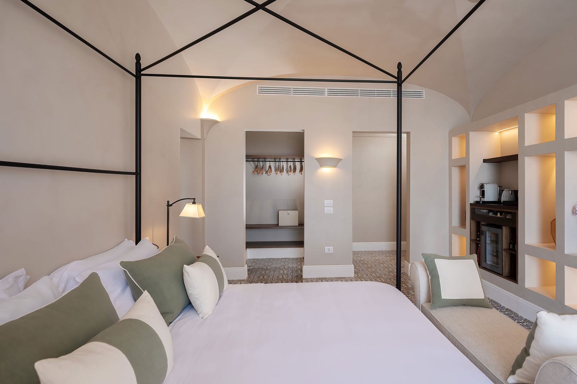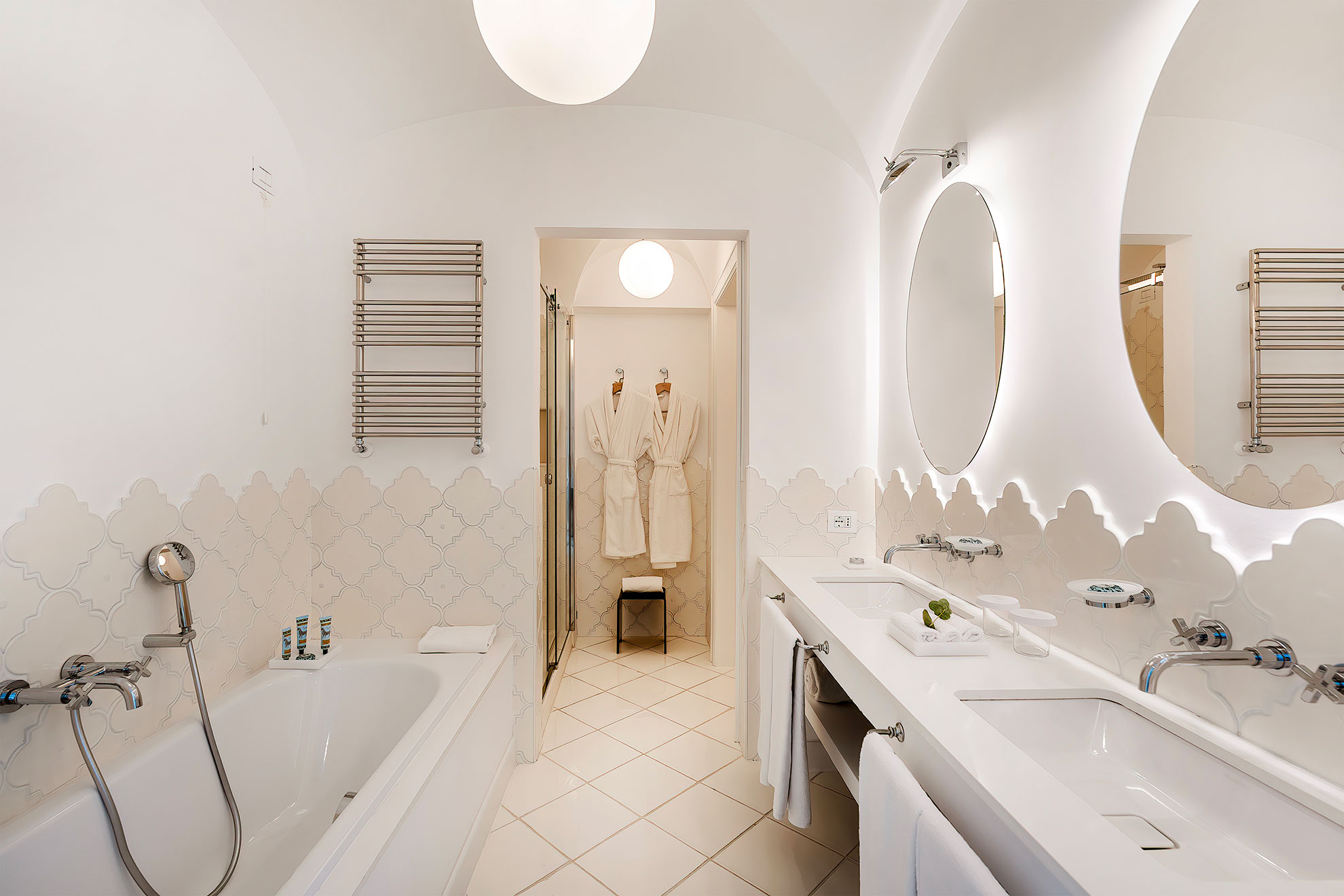 Furore Lodge. Located on one of the most exclusive and reserved terraces of the Furore Grand Hotel, this characteristic villa with warm tones welcomes two very elegant and refined suites, with a large living area and an independent entrance. All fully immersed in a beautiful garden of approx. 1000 square meters and with a beautiful relaxation area exclusively for residents’ use: the flagship of “Our House”.