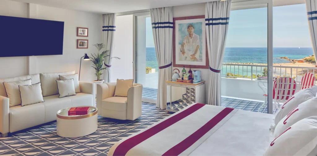 The Mediterranean you have in mind with a beach with private access from the hotel. Walking down barefoot from your room and crossing the sand is that summer feeling at its best.