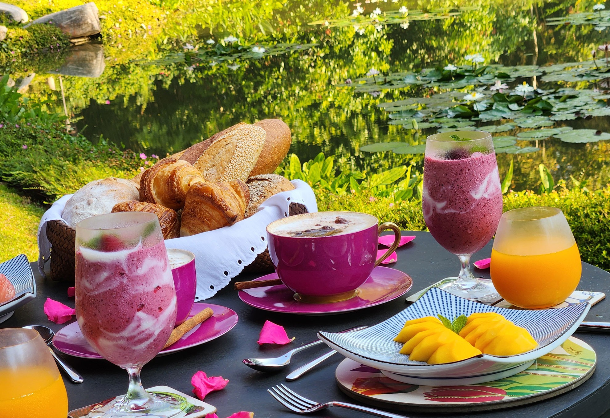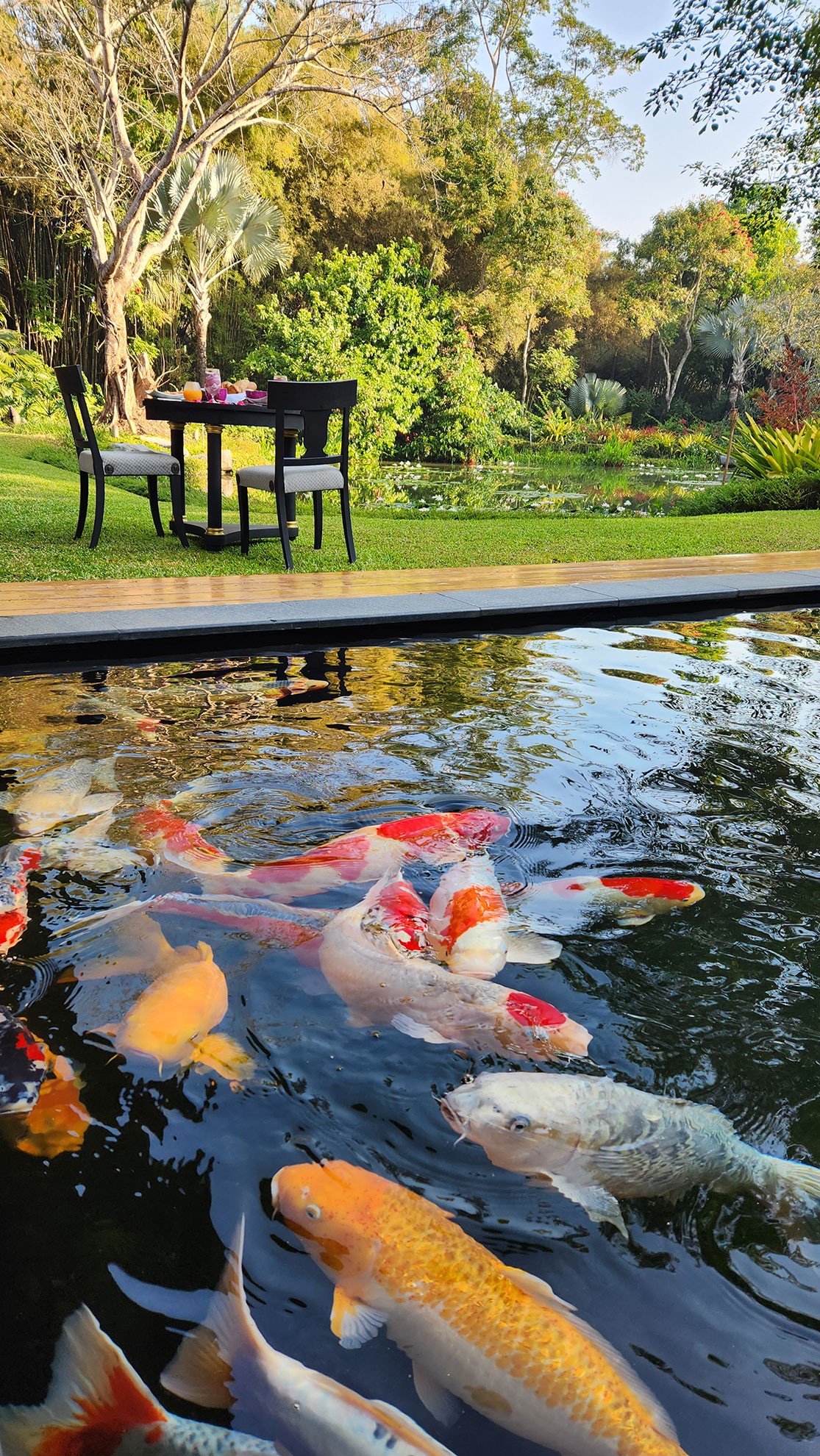 Set across 10 acres of meticulously manicured grounds and bordered by 14 acres of working rice fields, Tatvani offers a unique blend of cultivated beauty and authentic rural life. The retreat encompasses an impressive 3,045m² (35,000ft²) of living space distributed among its nine villas, providing ample room for relaxation and rejuvenation. In a nod to our love of nature, every Tatvani villa is named after a breed of koi.