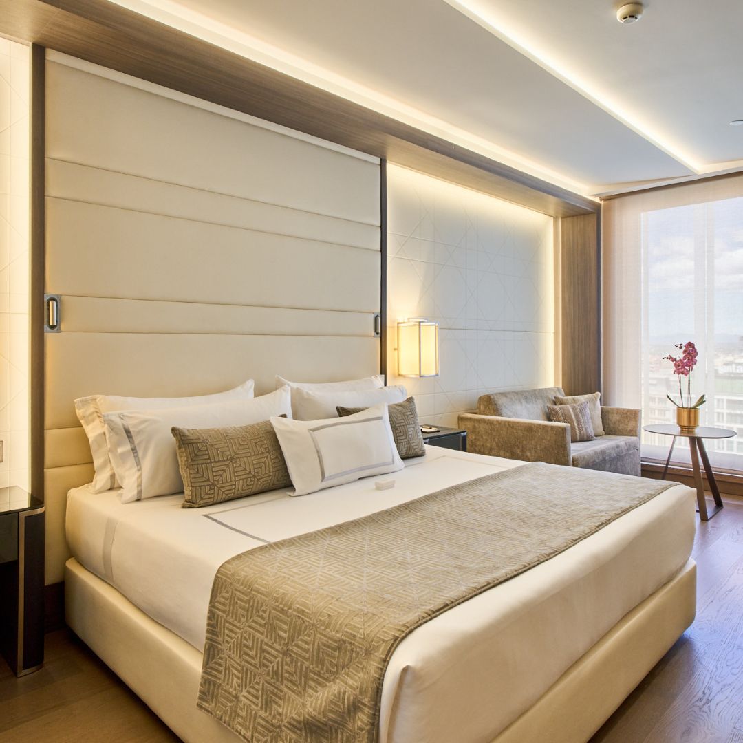 The VP Plaza España Design 5* hotel is situated at number 5 Plaza España, between the fascinating Gran Vía and the majestic Palacio de Oriente. It stands in the heart of Madrid. In addition to its excellent location in the city centre, the property boasts several other attractive features including sustainability, personalised services, event organisation, a strong commitment to art and design, the culinary arts and breathtaking views. This hotel has been awarded the prestigious ‘LEED Gold’ certificate for eco-efficiency and sustainability, which places it among the most sustainable hotels in Europe as of 2019.